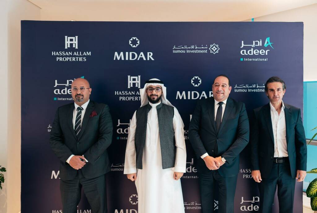 شهد التوقيع أيمن القوصي، العضو المنتدب والرئيس التنفيذي لشركة ميدار للاستثمار والتنمية العمرانية، وعبدالرحمن بن عايض القحطاني، العضو المنتدب لشركة ‘سمو للاستثمار الدولي، وباسل الصيرفي، الرئيس التنفيذي لشركة أدير العالمية، ومحمد مدحت حسن علام نائب رئيس مجلس الإدارة والعضو المنتدب لشركة حسن علام العقارية، بحسب بيان.